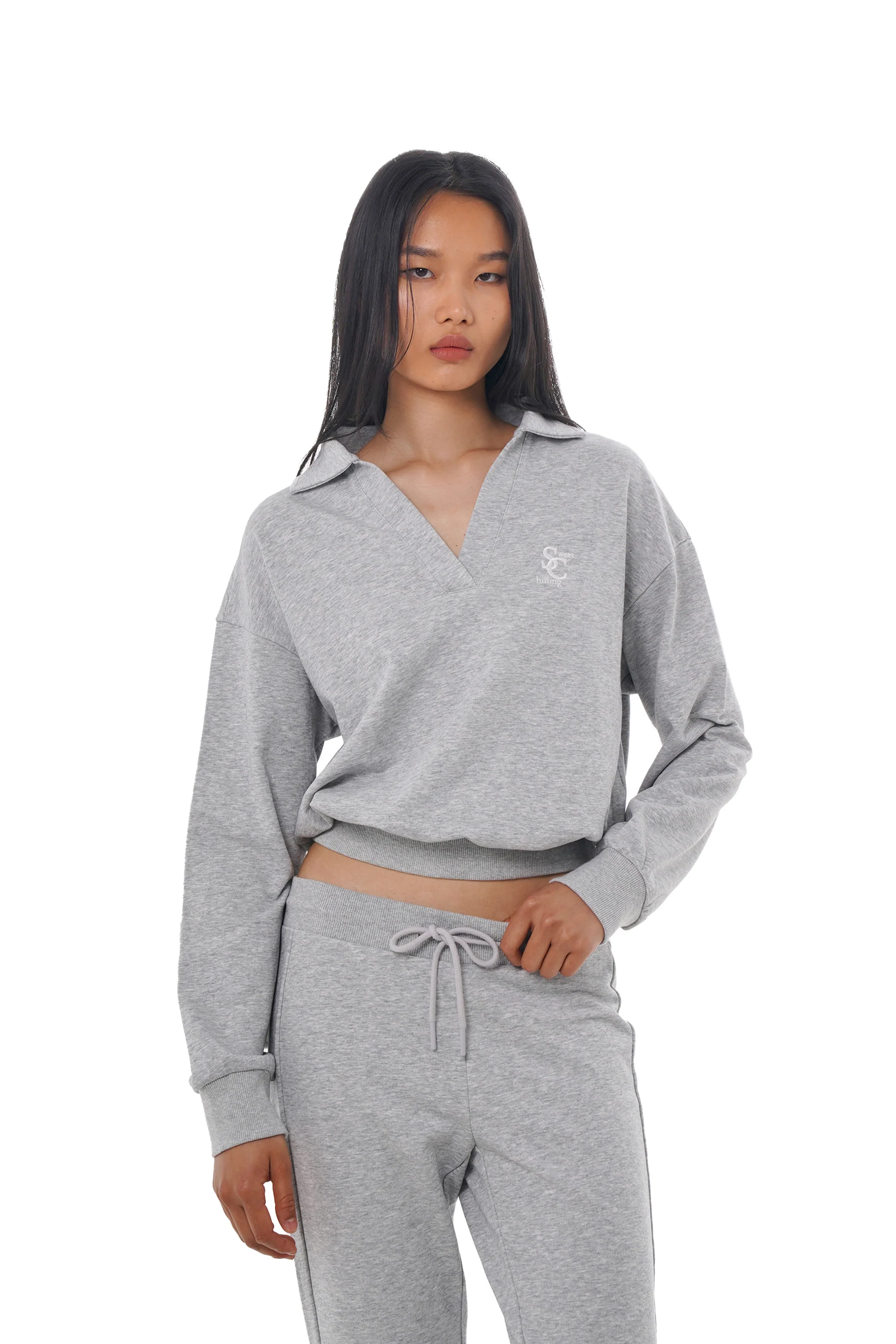 COLLARED CROP SWEATER SHIRT & FLARE SWEATER PANTS