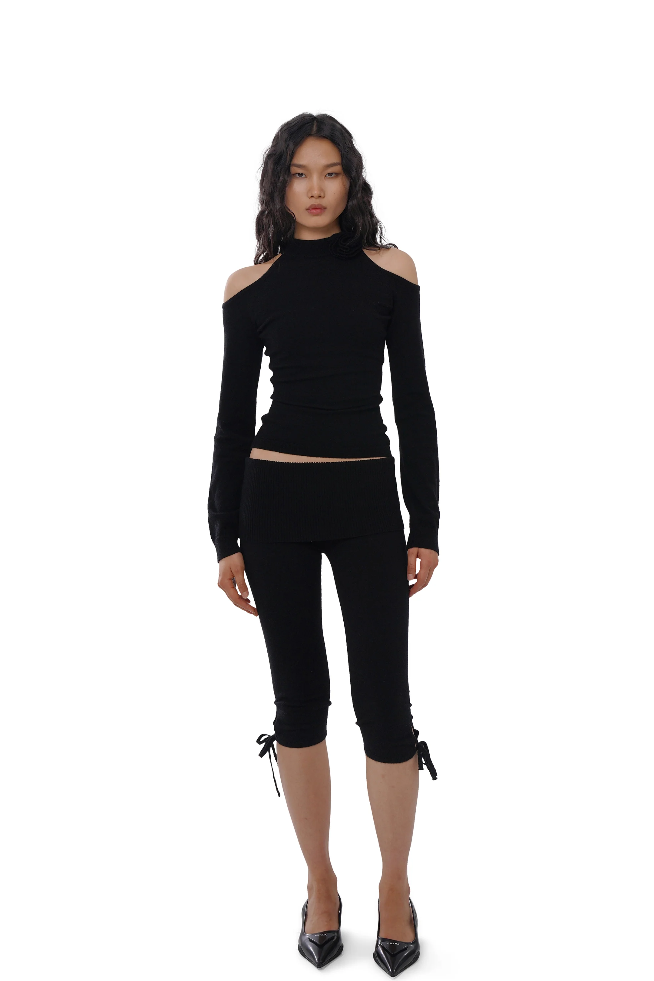 CUT-OUT FLORAL KNIT TOP & KNIT CAPRI TIE PANTS