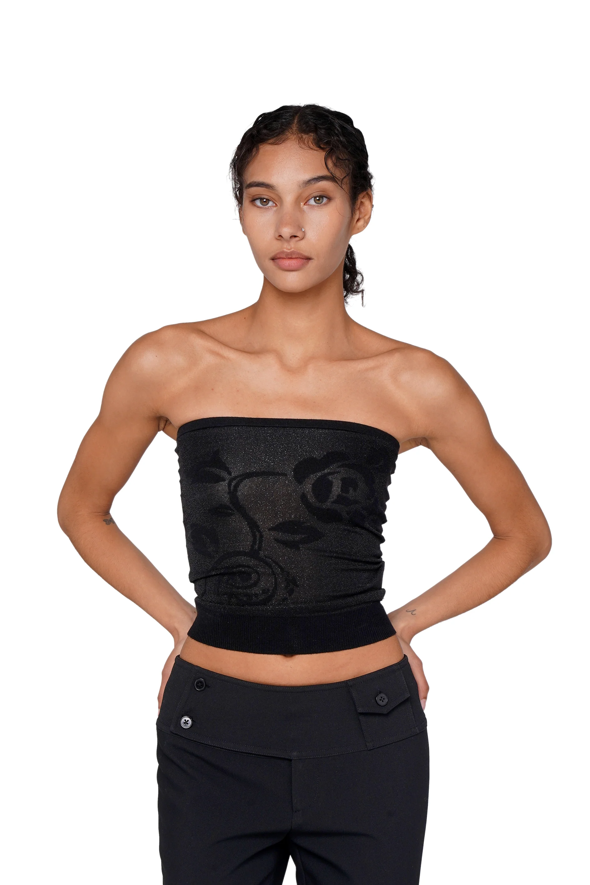 GLITTER JACQUARD KNIT TUBE TOP