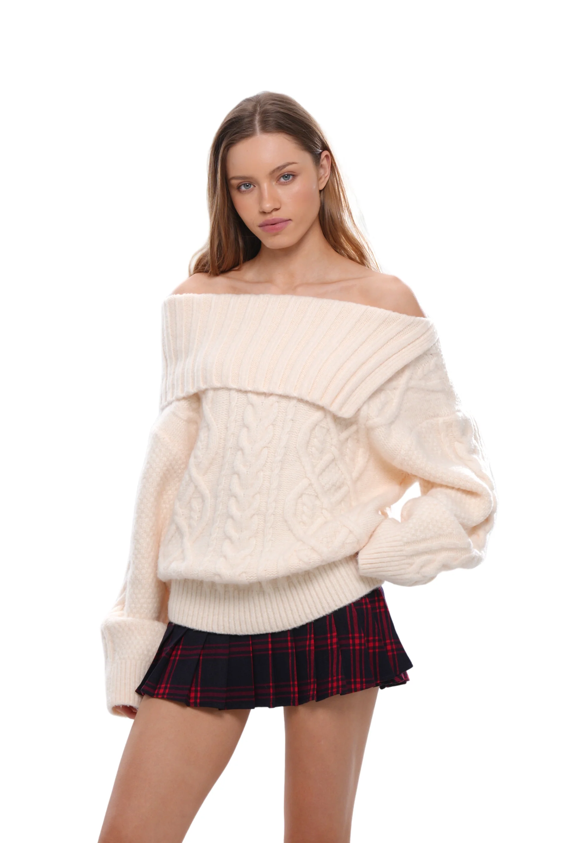 HOLIDAY VIBE OFF-SHOULDER RIBBED SWEATER