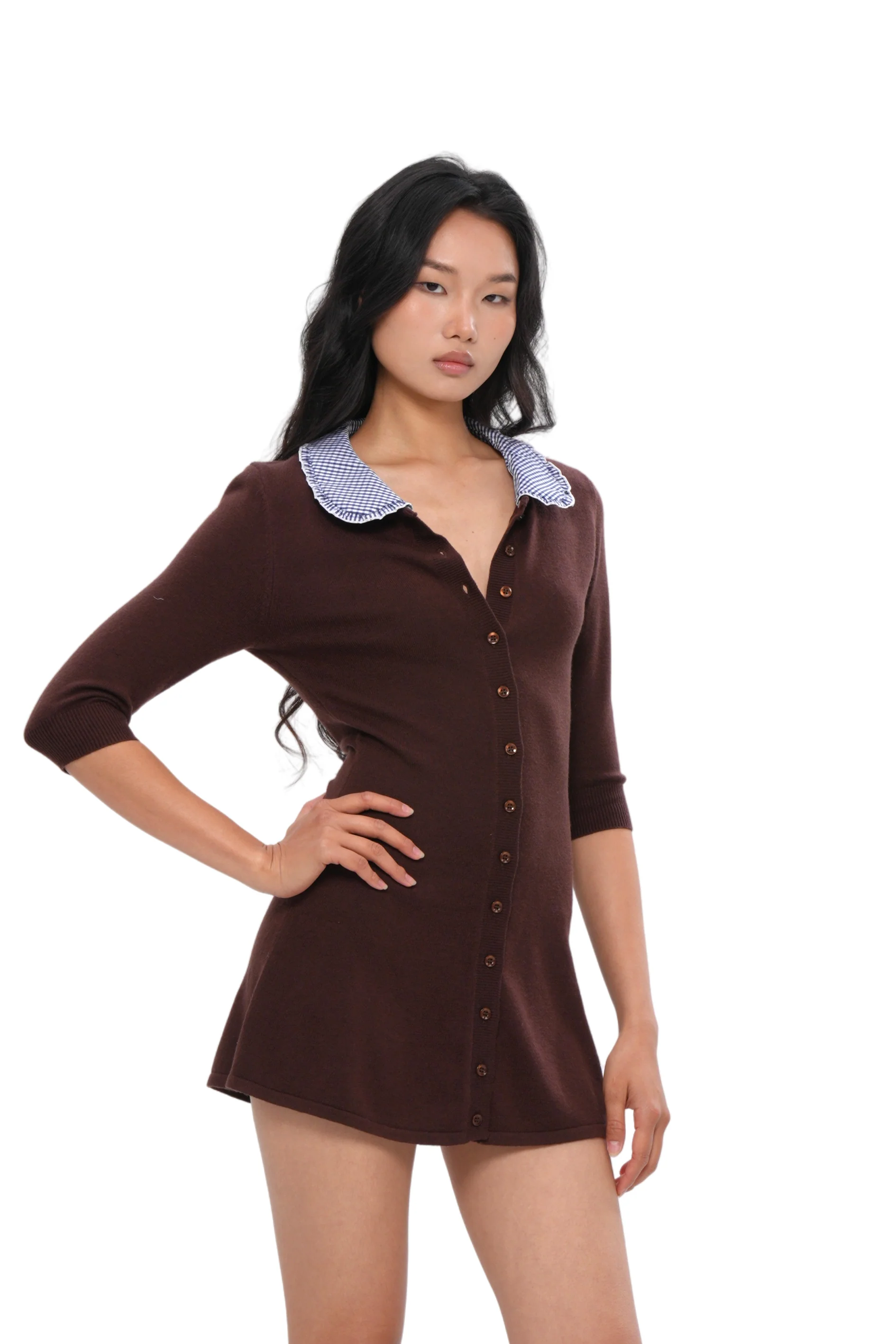 KNIT BARNCORE MINI DRESS WITH COLLAR