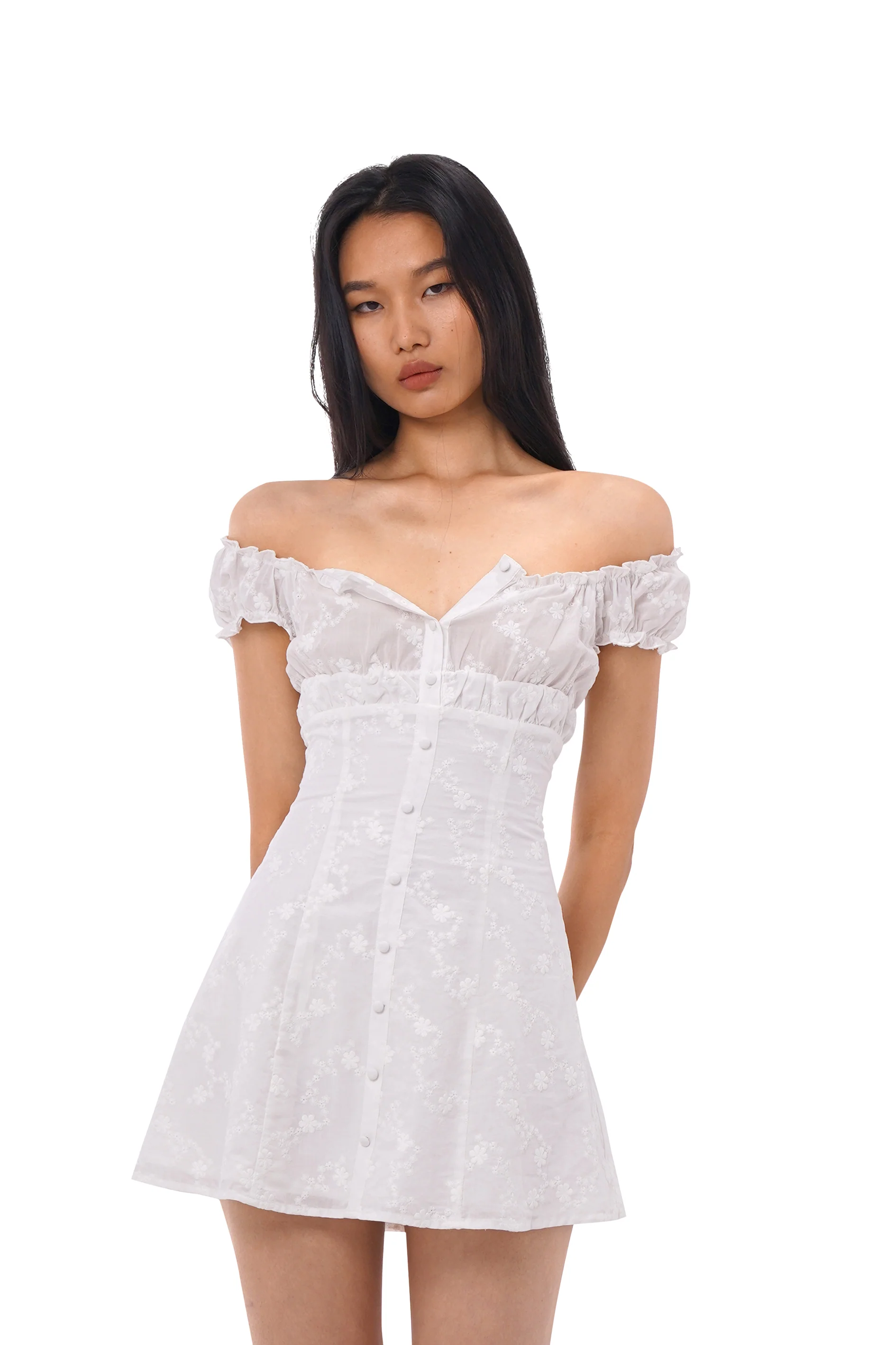 OFF SOULDER MINI DRESS WITH PRINCESS CUT