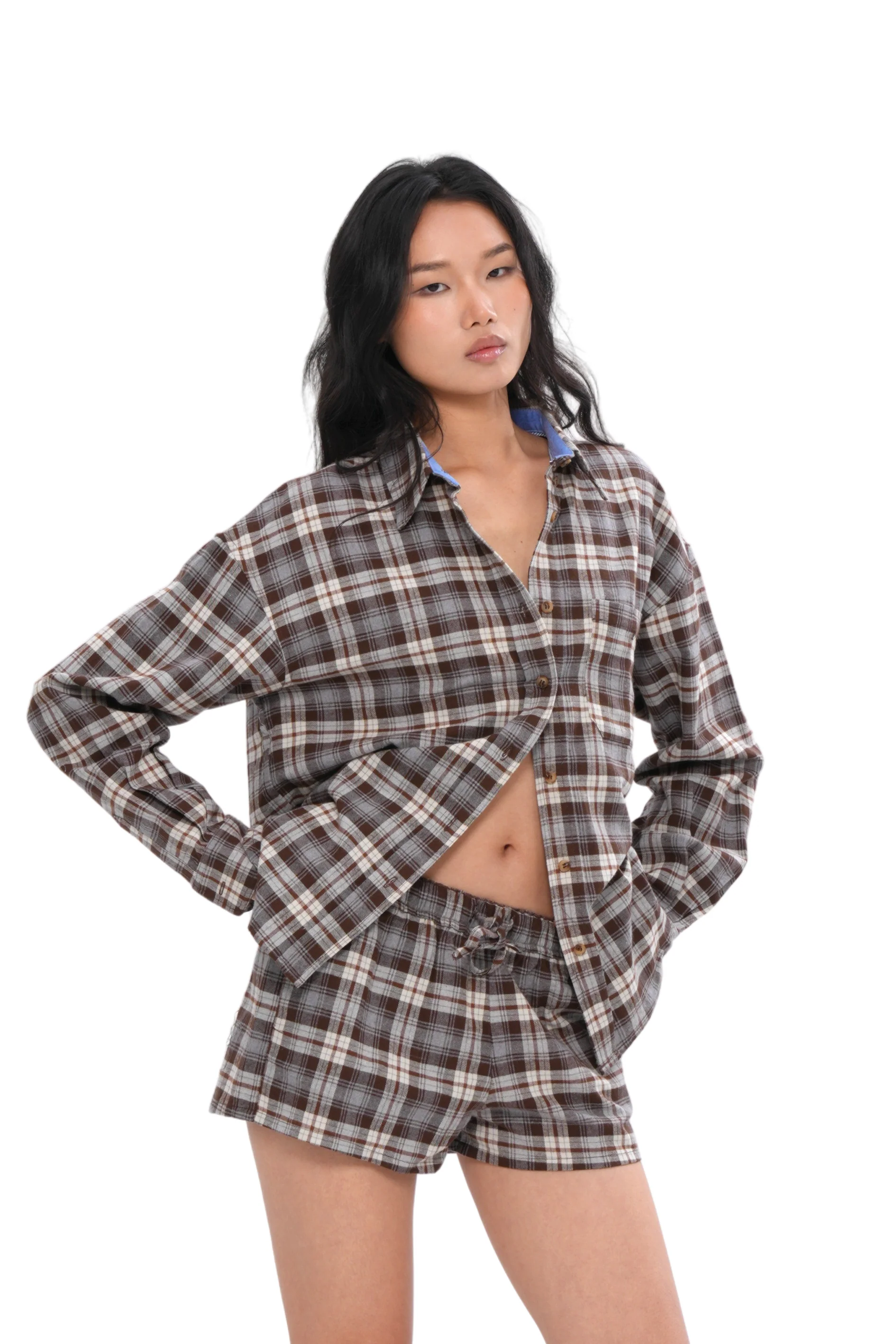 OVERSIZED BARNCORE PLAID SHIRT & SHORTS