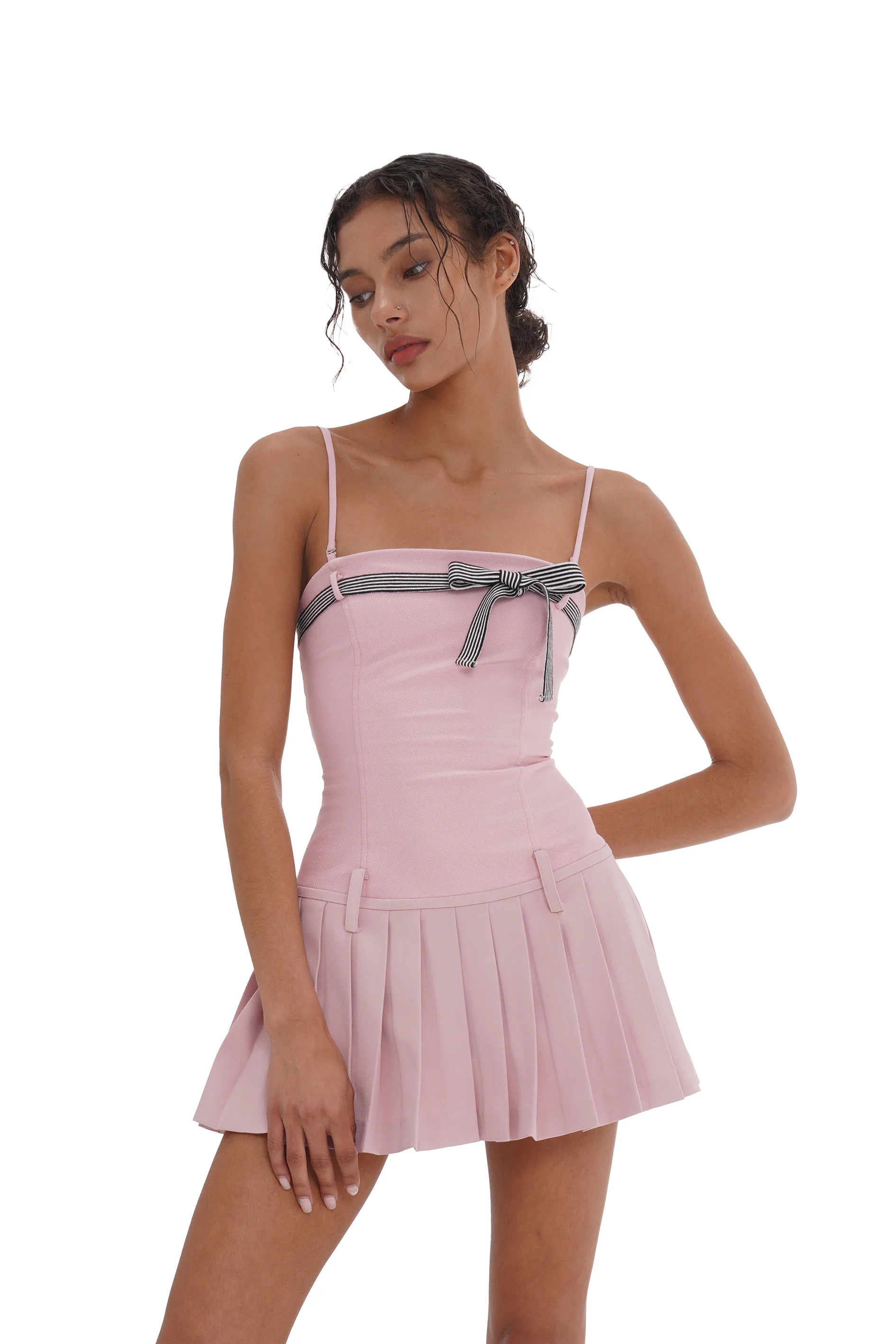 PARIS BOW DETAIL DRESS & MINI RUFFLE SHORTS