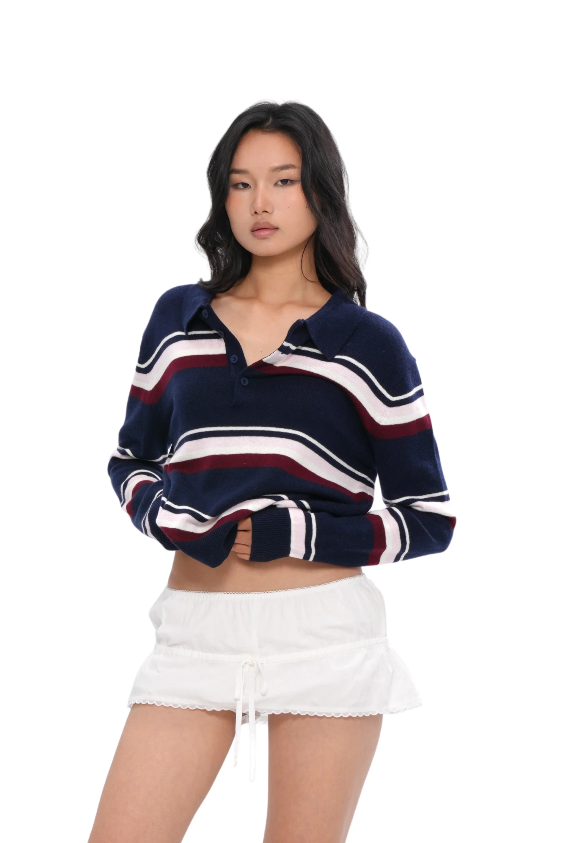 SOFT-TOUCH STRIPED PREPPY KNIT TOP